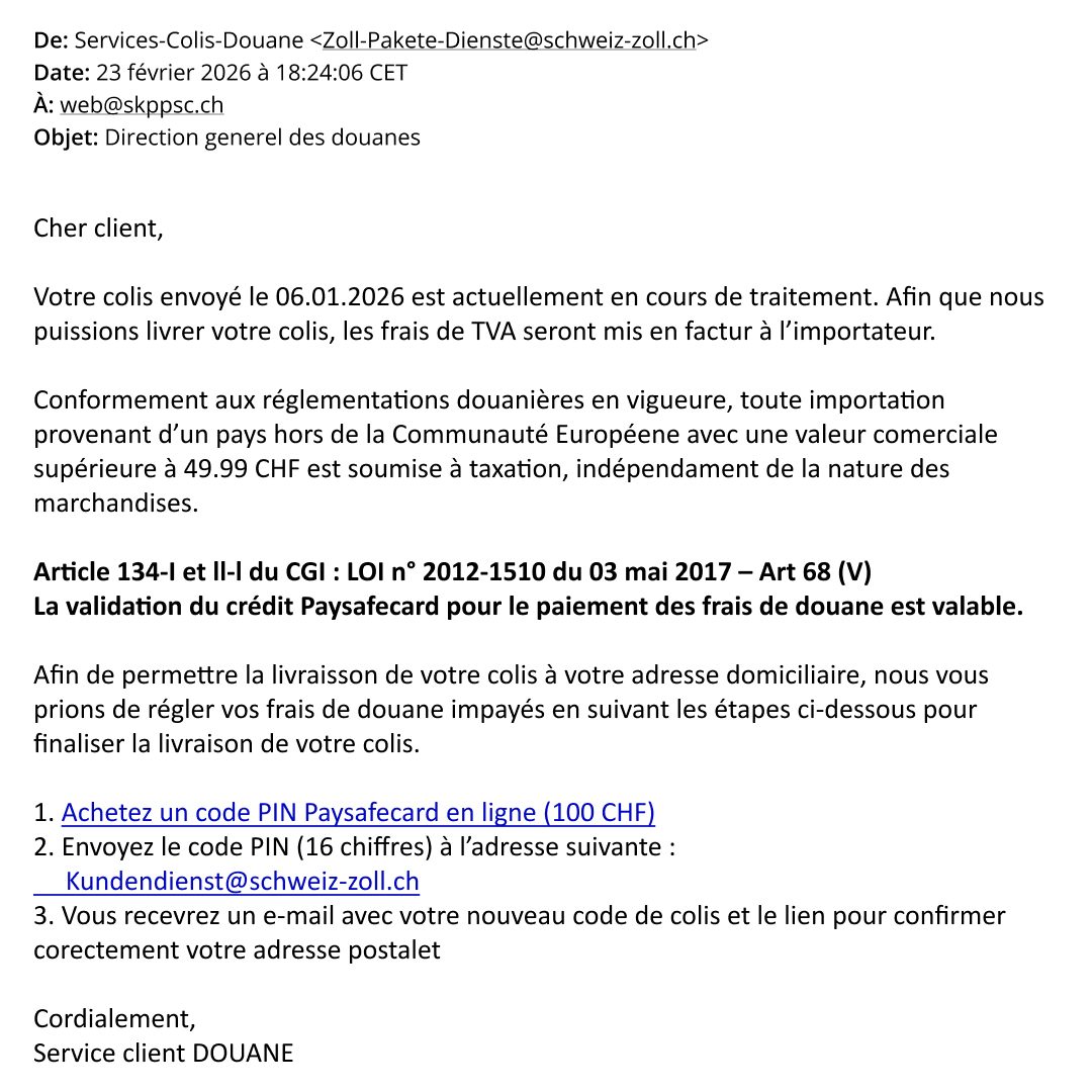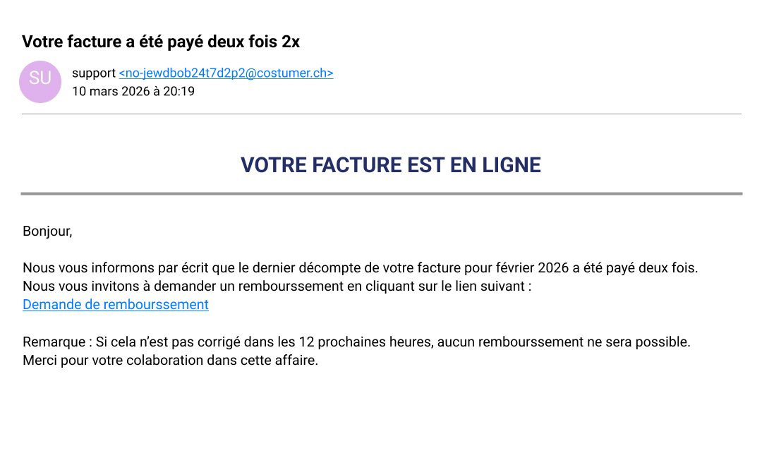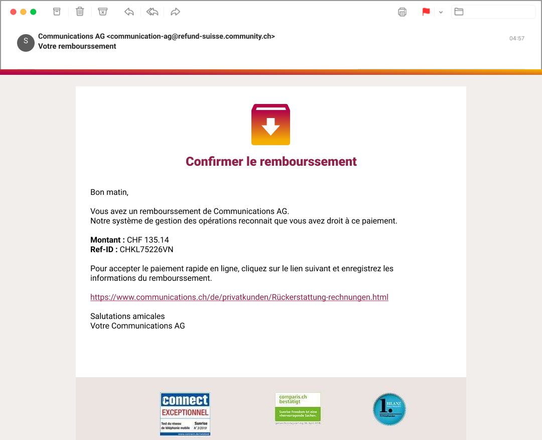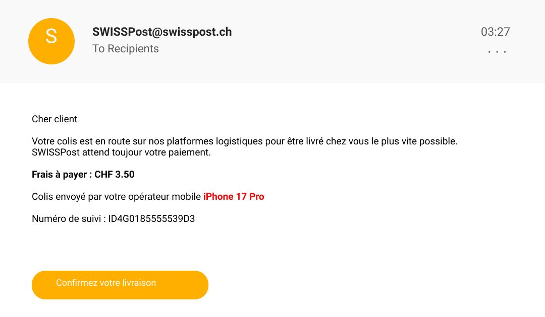 À quoi reconnaissez-vous que ce courrier électronique n’a pas été envoyé par la vraie Poste Suisse?